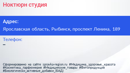 Ноктюрн, студия по адресу Ярославская область, Рыбинск, проспект Ленина, 189 в дальнейшем Организация, размещена в следующих категориях: