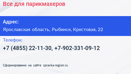 Все для парикмахеров по адресу Ярославская область, Рыбинск, Крестовая, 22 в дальнейшем Организация, размещена в следующих категориях: