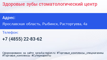 Здоровые зубы, стоматологический центр по адресу Ярославская область, Рыбинск, Расторгуева, 4а в дальнейшем Организация, размещена в следующих категориях: