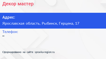 Декор мастер по адресу Ярославская область, Рыбинск, Герцена, 17 в дальнейшем Организация, размещена в следующих категориях: