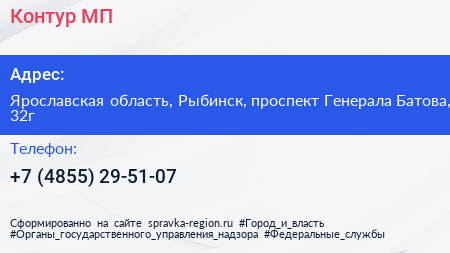 Контур МП по адресу Ярославская область, Рыбинск, проспект Генерала Батова, 32г в дальнейшем Организация, размещена в следующих категориях: