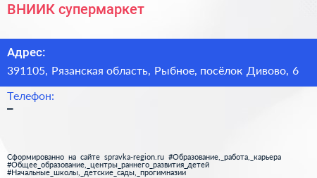 ВНИИК, супермаркет по адресу 391105, Рязанская область, Рыбное, посёлок Дивово, 6 в дальнейшем Организация, размещена в следующих категориях: