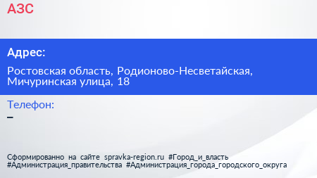 АЗС по адресу Ростовская область, Родионово-Несветайская, Мичуринская улица, 18 в дальнейшем Организация, размещена в следующих категориях: