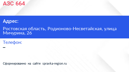 АЗС №664 по адресу Ростовская область, Родионово-Несветайская, улица Мичурина, 26 в дальнейшем Организация, размещена в следующих категориях: