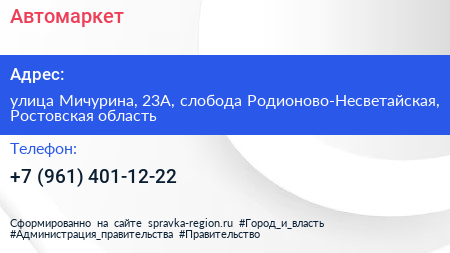 Автомаркет по адресу улица Мичурина, 23А, слобода Родионово-Несветайская, Ростовская область в дальнейшем Организация, размещена в следующих категориях: