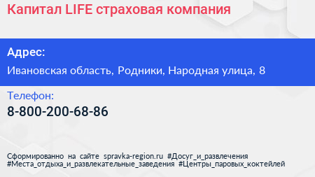Капитал LIFE, страховая компания по адресу Ивановская область, Родники, Народная улица, 8 в дальнейшем Организация, размещена в следующих категориях: