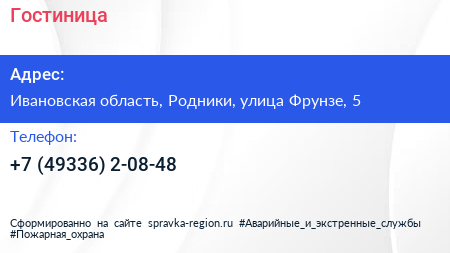 Гостиница по адресу Ивановская область, Родники, улица Фрунзе, 5 в дальнейшем Организация, размещена в следующих категориях: