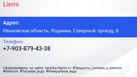 Lierro по адресу Ивановская область, Родники, Северный проезд, 8 в дальнейшем Организация, размещена в следующих категориях: