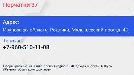 Перчатки - 37 по адресу Ивановская область, Родники, Малышевский проезд, 4Б в дальнейшем Организация, размещена в следующих категориях: