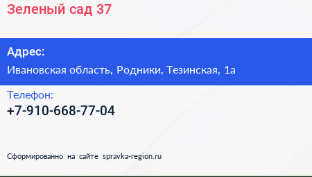 Зеленый сад 37 по адресу Ивановская область, Родники, Тезинская, 1а в дальнейшем Организация, размещена в следующих категориях: