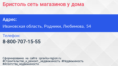 Бристоль, сеть магазинов у дома по адресу Ивановская область, Родники, Любимова, 54 в дальнейшем Организация, размещена в следующих категориях: