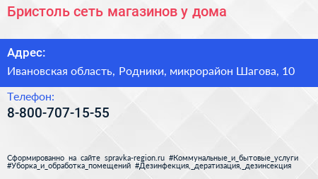 Бристоль, сеть магазинов у дома по адресу Ивановская область, Родники, микрорайон Шагова, 10 в дальнейшем Организация, размещена в следующих категориях: