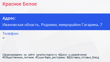 Красное & Белое по адресу Ивановская область, Родники, микрорайон Гагарина, 7 в дальнейшем Организация, размещена в следующих категориях: