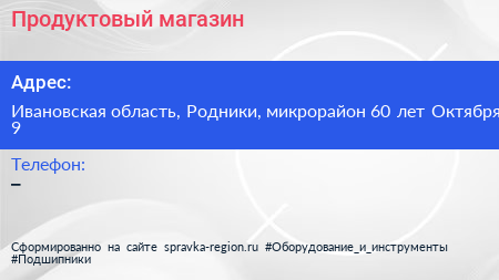 Продуктовый магазин по адресу Ивановская область, Родники, микрорайон 60 лет Октября, 9 в дальнейшем Организация, размещена в следующих категориях: