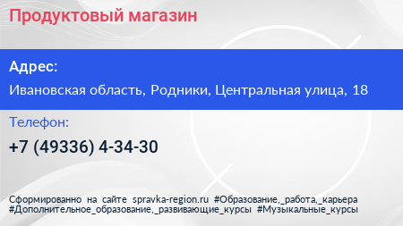 Продуктовый магазин по адресу Ивановская область, Родники, Центральная улица, 18 в дальнейшем Организация, размещена в следующих категориях: