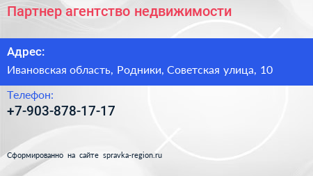 Партнер, агентство недвижимости по адресу Ивановская область, Родники, Советская улица, 10 в дальнейшем Организация, размещена в следующих категориях: