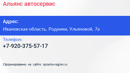 Альянс, автосервис по адресу Ивановская область, Родники, Ульяновой, 7а в дальнейшем Организация, размещена в следующих категориях: