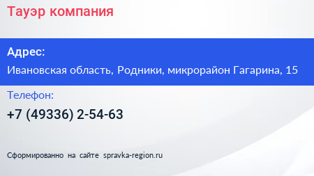 Тауэр, компания по адресу Ивановская область, Родники, микрорайон Гагарина, 15 в дальнейшем Организация, размещена в следующих категориях: