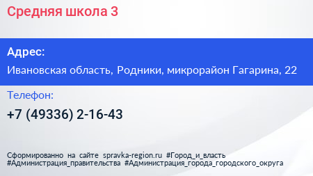 Средняя школа №3 по адресу Ивановская область, Родники, микрорайон Гагарина, 22 в дальнейшем Организация, размещена в следующих категориях: