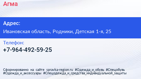 Агма по адресу Ивановская область, Родники, Детская 1-я, 25 в дальнейшем Организация, размещена в следующих категориях: