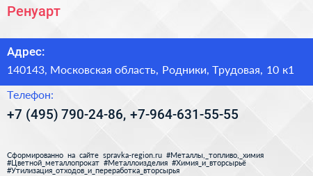 Ренуарт по адресу 140143, Московская область, Родники, Трудовая, 10 к1 в дальнейшем Организация, размещена в следующих категориях: