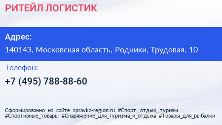 РИТЕЙЛ ЛОГИСТИК по адресу 140143, Московская область, Родники, Трудовая, 10 в дальнейшем Организация, размещена в следующих категориях: