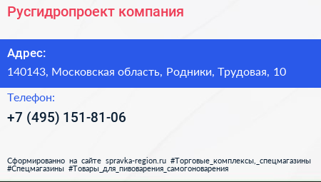 Русгидропроект, компания по адресу 140143, Московская область, Родники, Трудовая, 10 в дальнейшем Организация, размещена в следующих категориях: