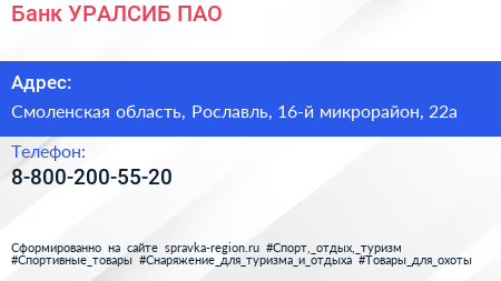 Банк УРАЛСИБ, ПАО по адресу Смоленская область, Рославль, 16-й микрорайон, 22а в дальнейшем Организация, размещена в следующих категориях: