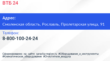 ВТБ 24 по адресу Смоленская область, Рославль, Пролетарская улица, 91 в дальнейшем Организация, размещена в следующих категориях:
