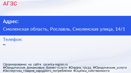 АГЗС по адресу Смоленская область, Рославль, Смоленская улица, 14/1 в дальнейшем Организация, размещена в следующих категориях: