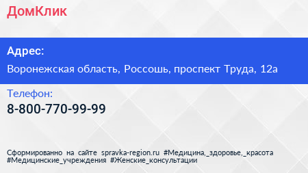 ДомКлик по адресу Воронежская область, Россошь, проспект Труда, 12а в дальнейшем Организация, размещена в следующих категориях: