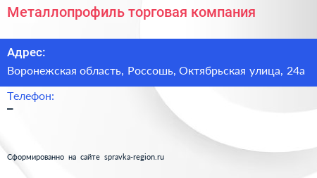 Металлопрофиль, торговая компания по адресу Воронежская область, Россошь, Октябрьская улица, 24а в дальнейшем Организация, размещена в следующих категориях: