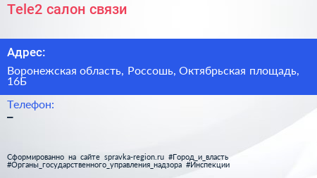 Tele2, салон связи по адресу Воронежская область, Россошь, Октябрьская площадь, 16Б в дальнейшем Организация, размещена в следующих категориях: