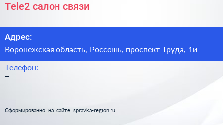 Tele2, салон связи по адресу Воронежская область, Россошь, проспект Труда, 1и в дальнейшем Организация, размещена в следующих категориях: