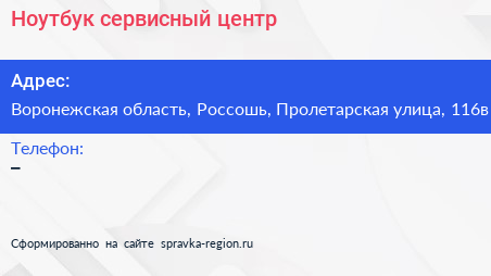 Ноутбук, сервисный центр по адресу Воронежская область, Россошь, Пролетарская улица, 116в в дальнейшем Организация, размещена в следующих категориях: