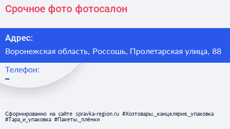 Срочное фото, фотосалон по адресу Воронежская область, Россошь, Пролетарская улица, 88 в дальнейшем Организация, размещена в следующих категориях: