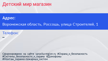 Детский мир, магазин по адресу Воронежская область, Россошь, улица Строителей, 1 в дальнейшем Организация, размещена в следующих категориях:
