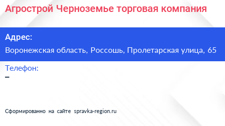 Агрострой Черноземье, торговая компания по адресу Воронежская область, Россошь, Пролетарская улица, 65 в дальнейшем Организация, размещена в следующих категориях: