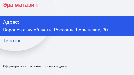 Эра, магазин по адресу Воронежская область, Россошь, Большевик, 30 в дальнейшем Организация, размещена в следующих категориях: