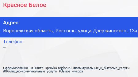 Красное & Белое по адресу Воронежская область, Россошь, улица Дзержинского, 13а в дальнейшем Организация, размещена в следующих категориях: