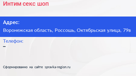 Интим, секс-шоп по адресу Воронежская область, Россошь, Октябрьская улица, 79в в дальнейшем Организация, размещена в следующих категориях: