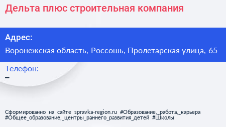 Дельта-плюс, строительная компания по адресу Воронежская область, Россошь, Пролетарская улица, 65 в дальнейшем Организация, размещена в следующих категориях: