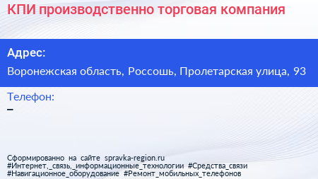 КПИ, производственно-торговая компания по адресу Воронежская область, Россошь, Пролетарская улица, 93 в дальнейшем Организация, размещена в следующих категориях: