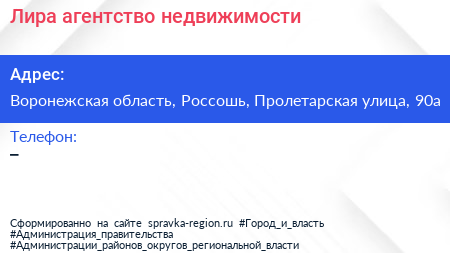 Лира, агентство недвижимости по адресу Воронежская область, Россошь, Пролетарская улица, 90а в дальнейшем Организация, размещена в следующих категориях: