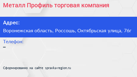 Металл Профиль, торговая компания по адресу Воронежская область, Россошь, Октябрьская улица, 76г в дальнейшем Организация, размещена в следующих категориях: