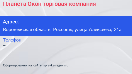 Планета Окон, торговая компания по адресу Воронежская область, Россошь, улица Алексеева, 21а в дальнейшем Организация, размещена в следующих категориях: