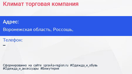 Климат, торговая компания по адресу Воронежская область, Россошь, в дальнейшем Организация, размещена в следующих категориях: