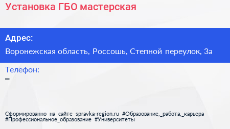 Установка ГБО, мастерская по адресу Воронежская область, Россошь, Степной переулок, 3а в дальнейшем Организация, размещена в следующих категориях: