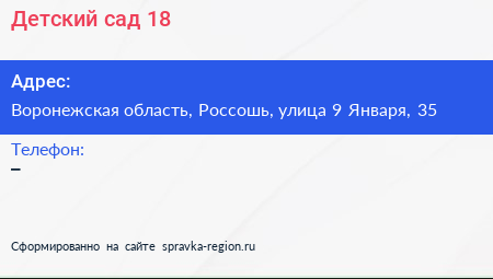 Детский сад №18 по адресу Воронежская область, Россошь, улица 9 Января, 35 в дальнейшем Организация, размещена в следующих категориях: