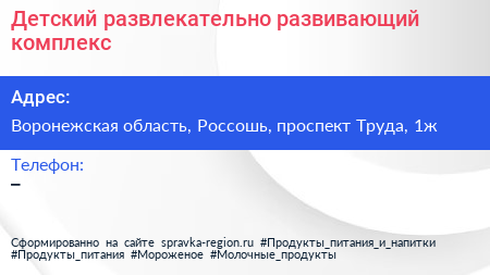 Детский развлекательно-развивающий комплекс по адресу Воронежская область, Россошь, проспект Труда, 1ж в дальнейшем Организация, размещена в следующих категориях: